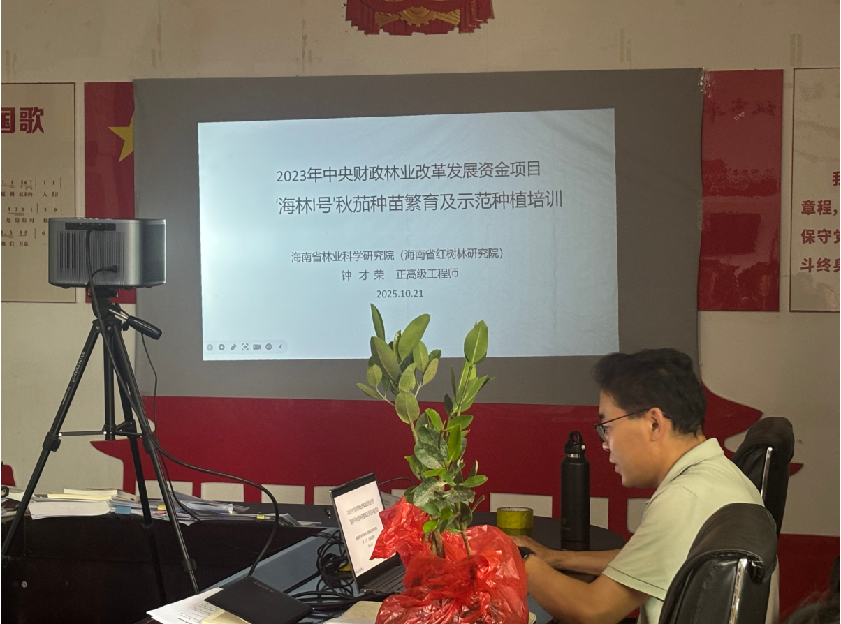 为提升我省红树林生态修复成效,加快“海林1号”红海兰与“海林1号”秋茄等林木良种的繁育与种植技术推广,我院于2025年10月21日在临高县博厚镇组织实施了两场专题培训,内容分别为2023年中央财政林业科技推广示范项目《“海林1号”红海兰种苗繁育及示范种植》与《“海林1号”秋茄种苗繁育及示范种植》。