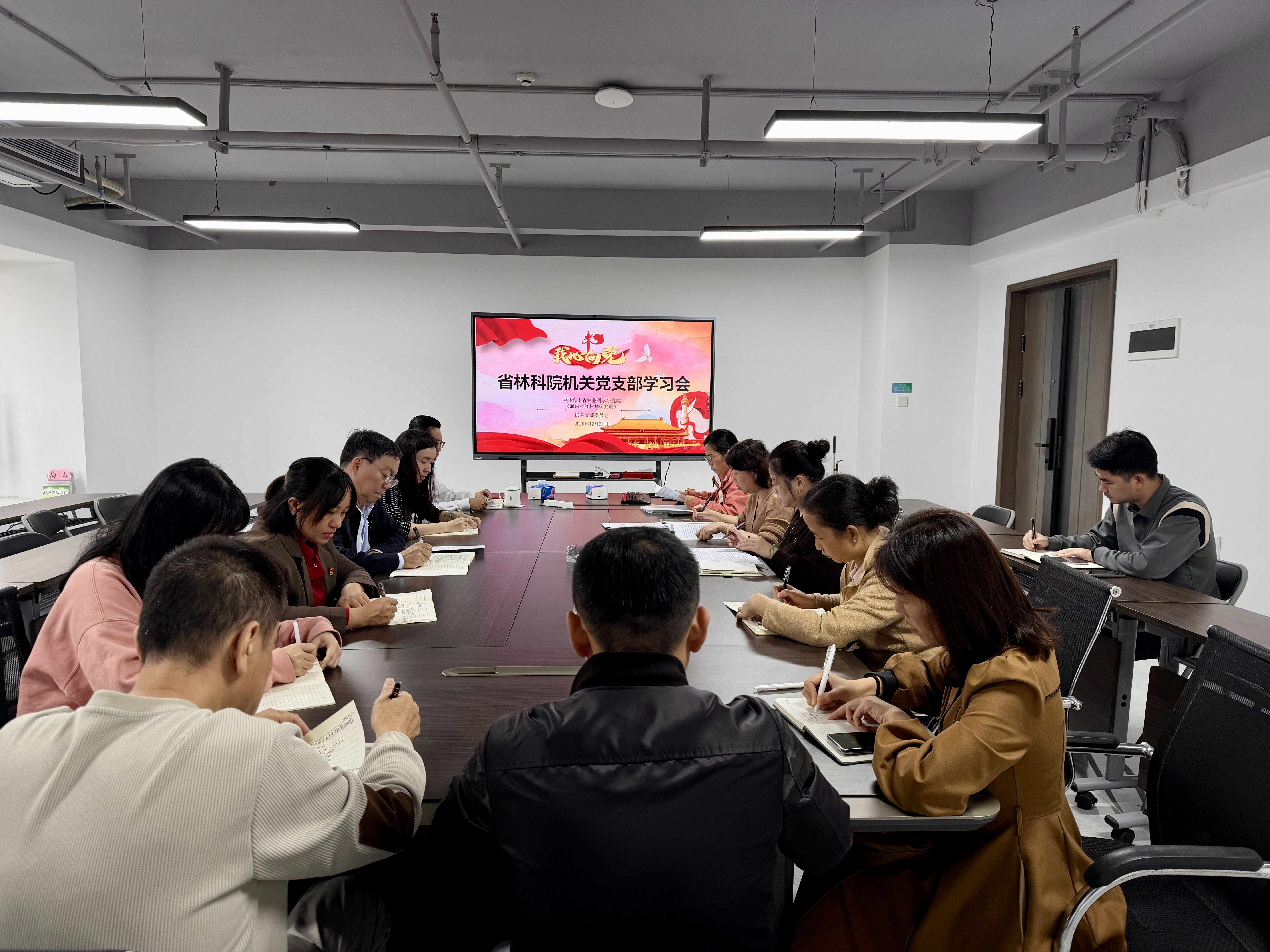 12月30日,海南省林业科学研究院(海南省红树林研究院)机关党支部以专题学习会为契机,统筹推进支委补选、退休党员欢送、重温入党誓词等工作。活动特别采用“政治生日+荣退祝福”的形式,为即将退休的老党员李新能同志送上党组织的关怀,让仪式感与温暖感贯穿始终,进一步增强了全体党员的归属感与使命感。
